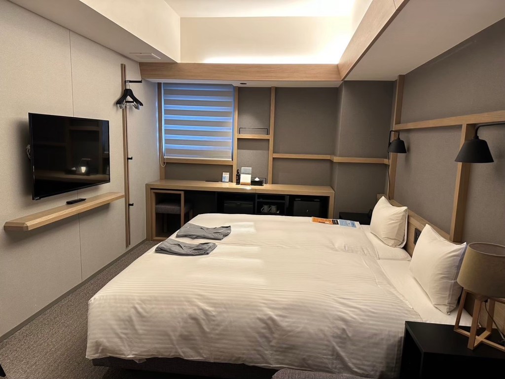 2025年4月に開業したホテルのため、綺麗で宿泊した時は木の香りがしました。お部屋はシンプルなデザインでデスクが広く、出張などでも宿泊しやすいと感じます。